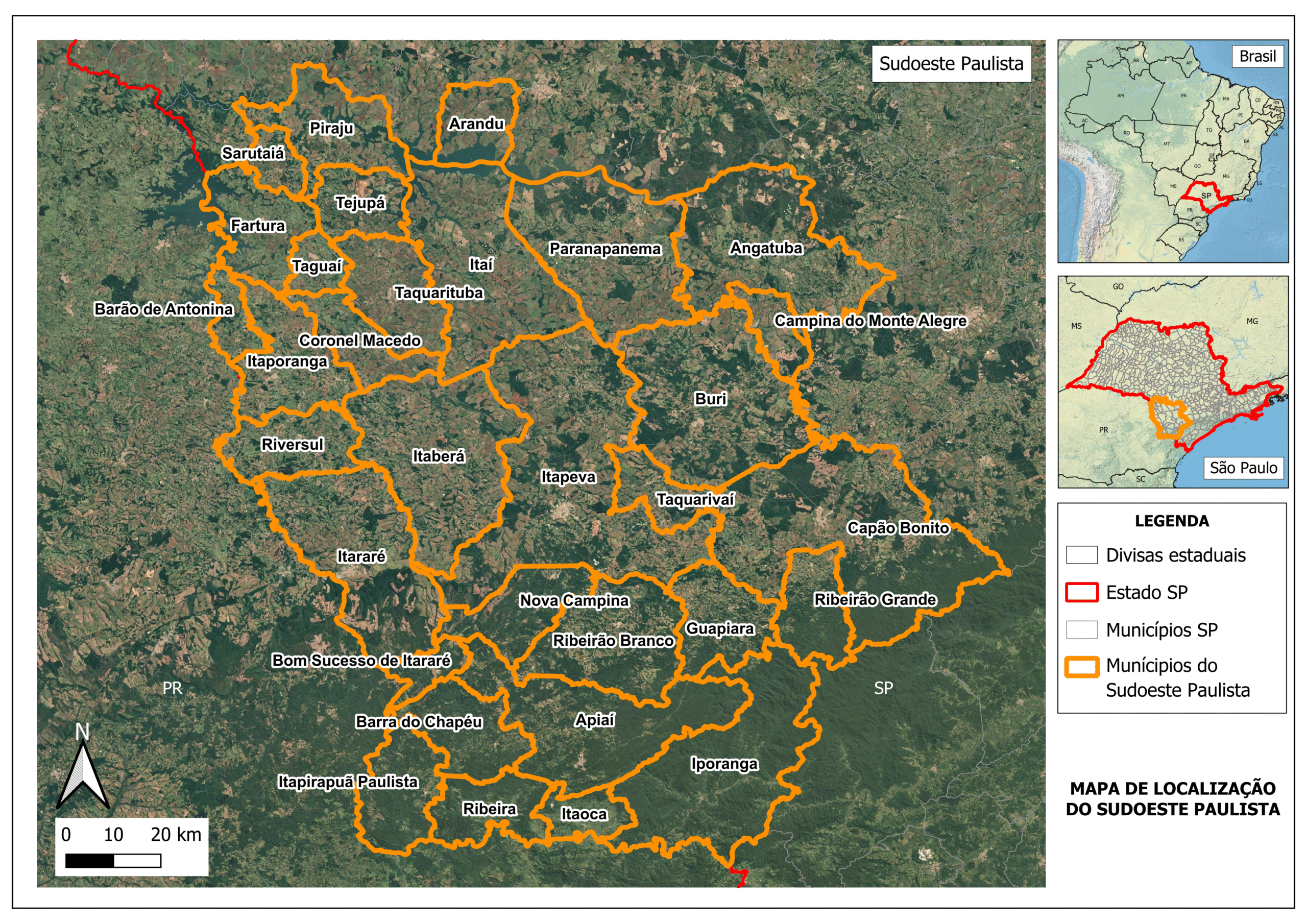 Mas antes, é importante você saber que o Sudoeste Paulista é uma região composta por 32 municípios, localizados próximos da divisa do estado de São Paulo com o Paraná, como mostra a Figura 1.