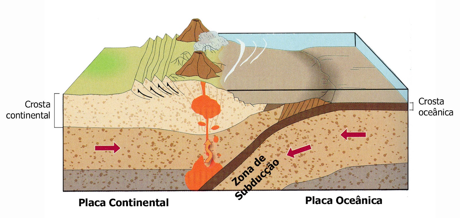 Para que fosse possível a separação entre a América do Sul e a África, as rochas do embasamento também precisaram ser fragmentadas. A força necessária para separar dois continentes veio de uma região muito profunda do planeta, a mais de 40 quilômetros de profundidade: o manto terrestre. Com essa força sendo exercida do interior para a superfície da Terra, as rochas do embasamento foram então fraturadas e soerguidas (levantadas). É por isso que quando você vai para uma praia do litoral de São Paulo, você precisa passar por um trecho de serras, que são essas rochas do embasamento que foram soerguidas e fraturadas.