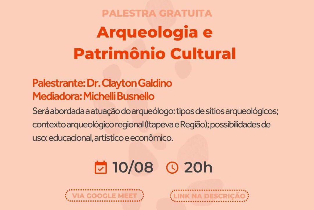 – “Palestra Arqueologia e Patrimônio Cultura”, Virtual. Agosto, 2022