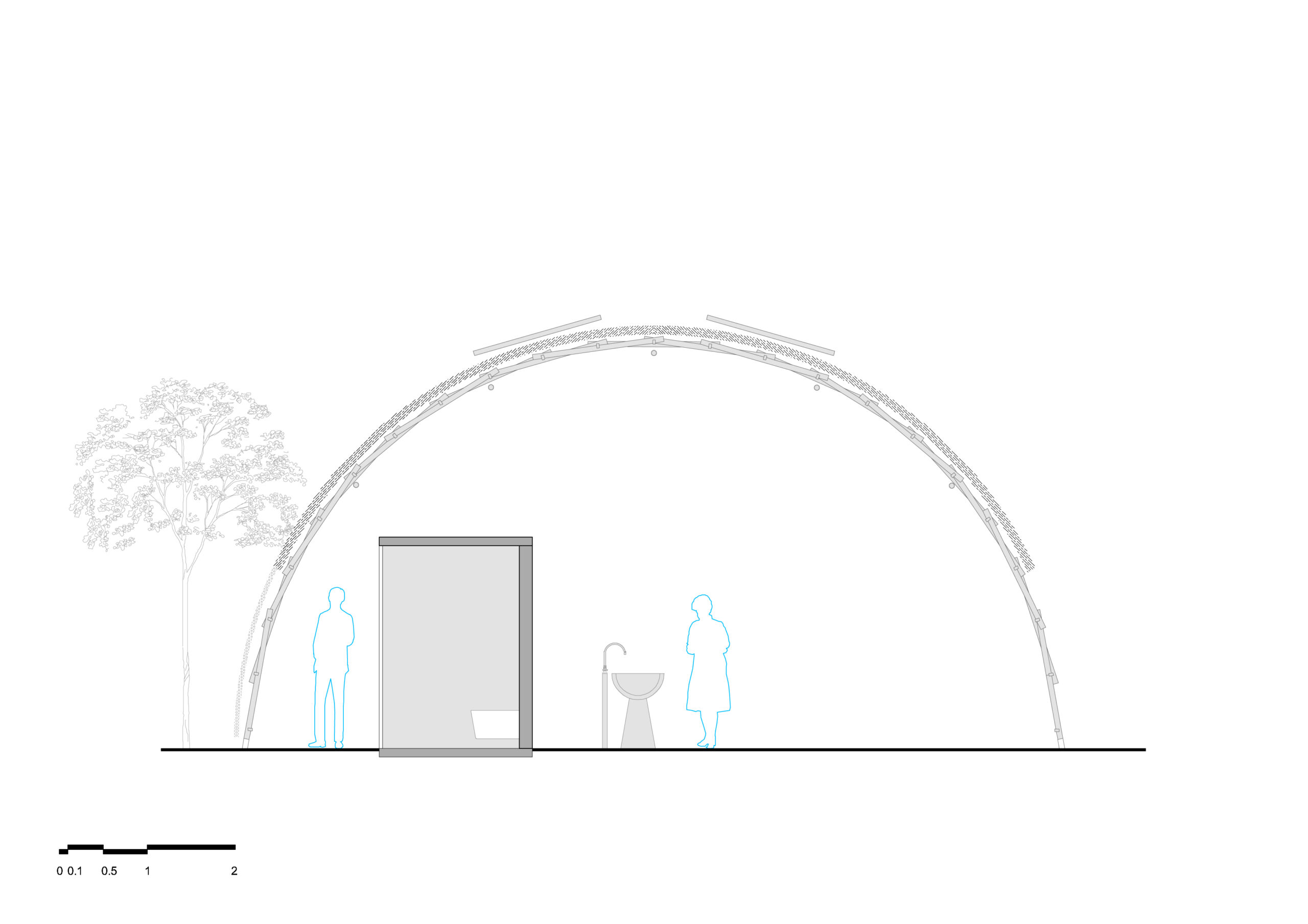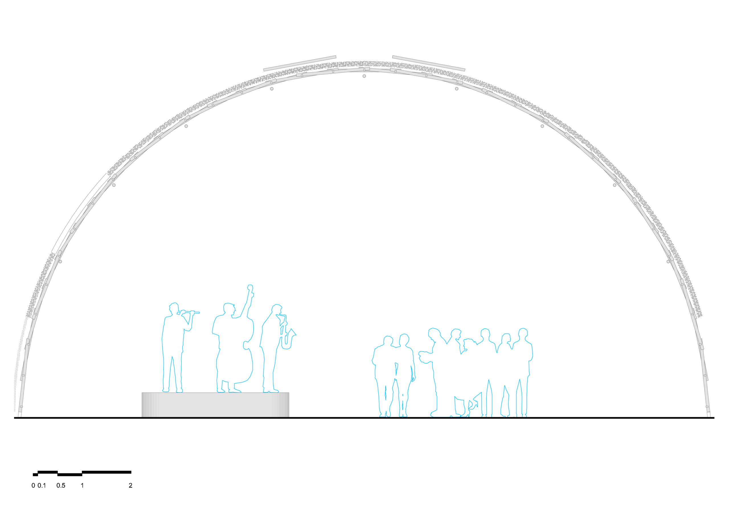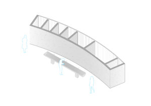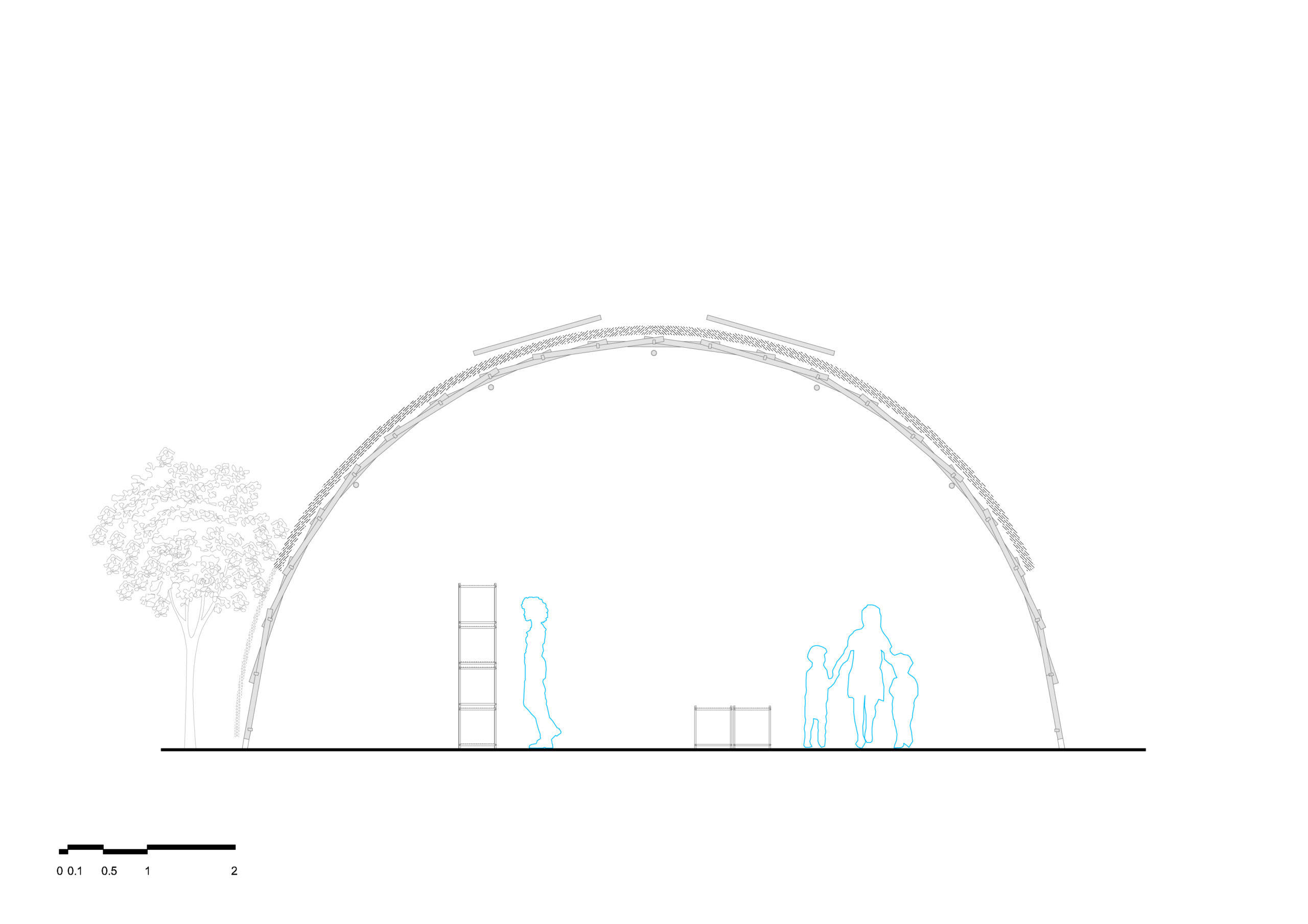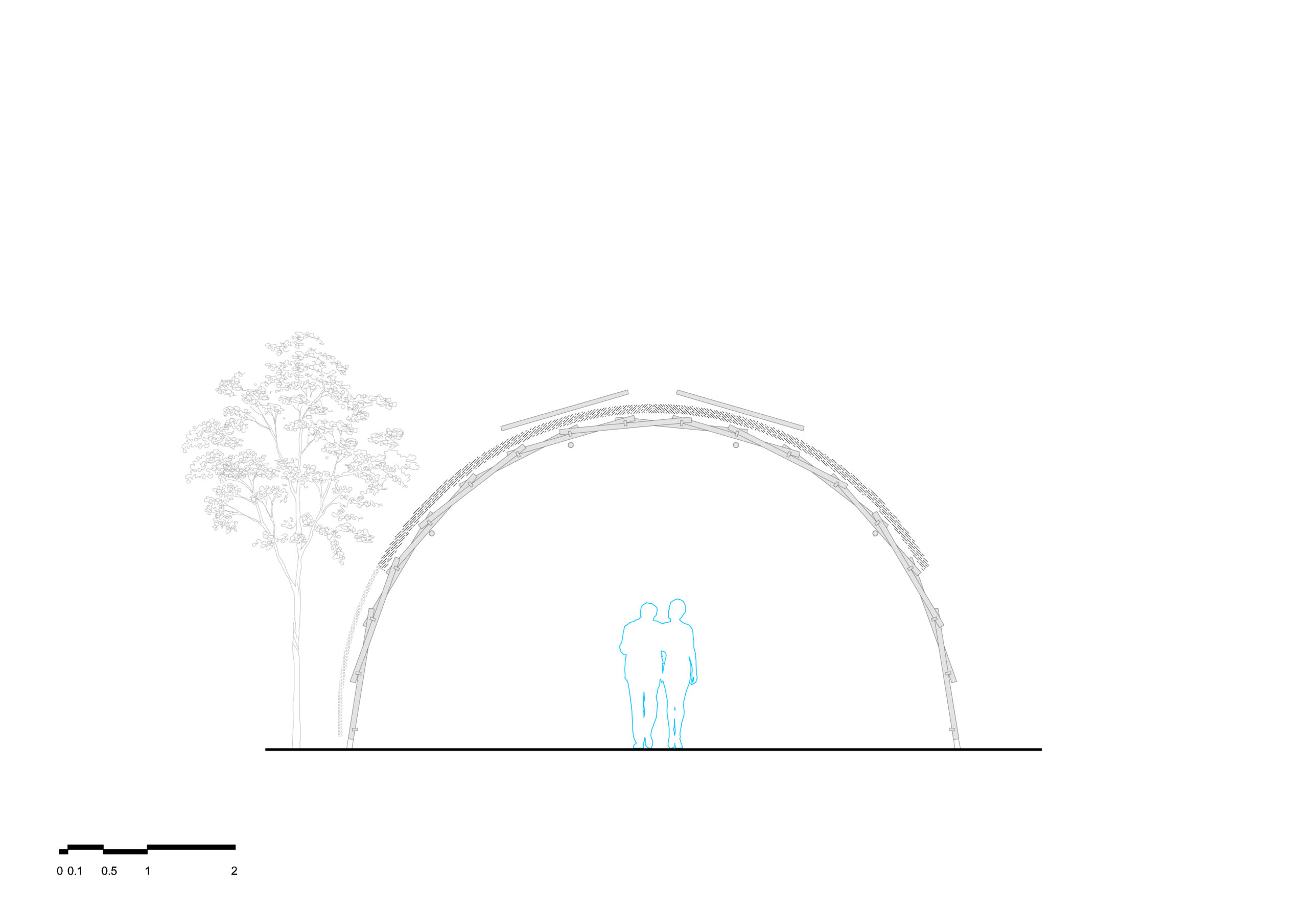 A estrutura destas cascas em curva é formada por arcos de madeira autoportantes, constituídos por peças leves, facilmente transportadas, montadas e travadas, não havendo a necessidade de uma equipe de obra especializada, equipamentos de grande porte, dispensando até mesmo o cimbramento.